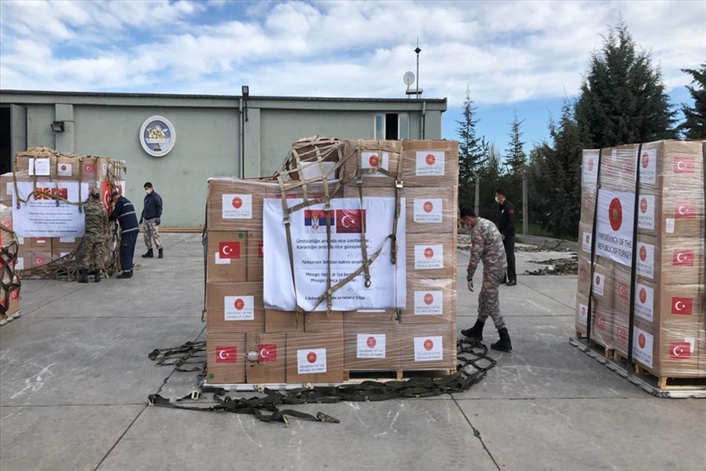 Cumhurbaşkanı Recep Tayyip Erdoğan’ın talimatı ile Covid-19 salgını ile mücadele kapsamında Balkan ülkeleri için maske, tulum ve tanı kiti gönderildi. Sağlık Bakanlığı’nın hazırladığı sağlık malzemeleri, Milli Savunma Bakanlığı’nı işbirliği ile A400M askeri kargo uçağıyla Kuzey Makedonya, Karadağ, Sırbistan, Bosna Hersek ve Kosova’ya Ankara Etimesgut Askeri Havaalanı’ndan gönderildi. Kargo paketleri üzerinde Türkiye ve yardım gönderilen ülkelerin bayrakları ile Hz. Mevlana’nın, ’Ümitsizliğin ardında nice ümitler var, karanlığın ardında nice güneşler var’ sözleri yer aldı. Kargo kutularının üzerinde, ’Türkiye’den sevgilerle’ notu da koyuldu. Uçak yardım malzemelerinin dağıtımında, önce Sırbıstan’ın başkenti Belgrad’a, ardından Saray Bosna, Karadağ, Üsküp ve Priştine’ye giderek malzemeleri teslim edecek.