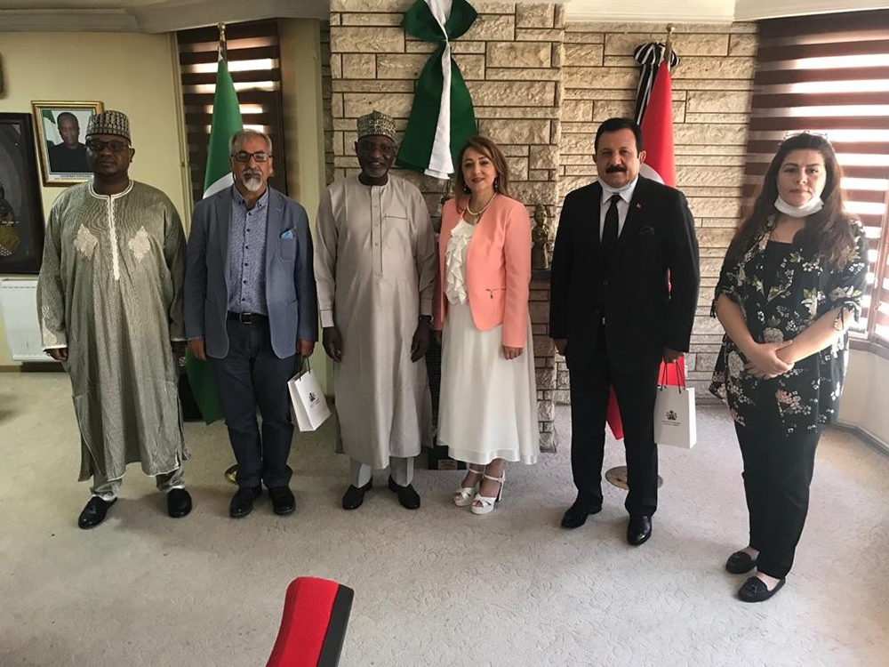 Ankara’da Nijer Büyükelçiliği tarafından düzenlenen toplantıya ULUSKON bünyesindeki işadamları katıldı. Toplantıda Nijerya Fedarel Cumhuriyeti’nin Ankara Büyükelçisi Ilyasu Audu Paragalda ve Nijerya Büyükelçiliği Müşaviri M.Y. Sani ile görüşme gerçekleştirildi. Toplantıda iki ülke arasındaki ticari ilişkilerin geliştirilmesinin ele alındığı ziyarette konuşan ULUSKON Başkanı Atasoy, “Türkiye ile Nijerya arasındaki ticaret hacmini başta maden, gıda ve inşaat olmak üzere her sektörde geliştireceğiz. Nijerya’nın Afrika kıtasındaki en büyük ekonomi olduğunu belirtmek isterim. Doğal kaynakları, petrol ve doğalgaz rezervleri, genç ve kalabalık nüfusuyla Nijerya büyük bir potansiyel barındırıyor. Bu özellikler tüm dünyanın olduğu gibi Türk yatırımcıların da ilgisini çekiyor" diye konuştu.