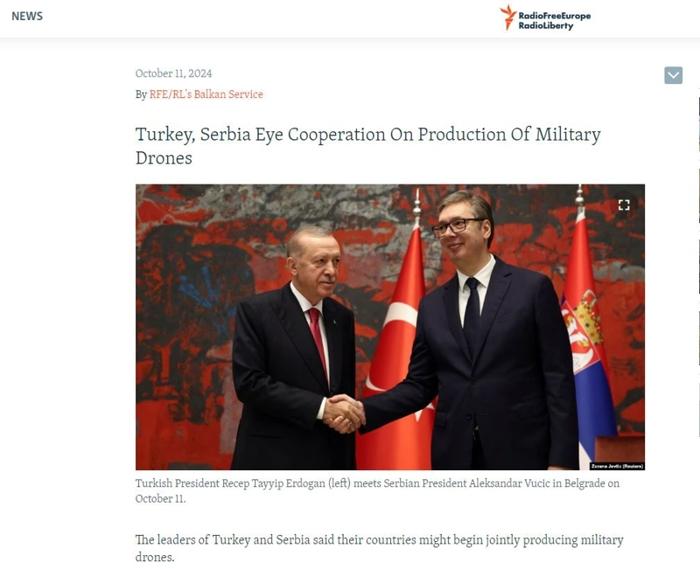 Avrupa basınından Radio Free Europe/Radio Liberty isimi medya kuruluşu dün Türkiye ile Sırbistan'ın savunma alanında verdiği mesajları gündemine aldı. Türkiye ile Sırbistan'ın ortak savunma sanayi üretimi konusunda istekli olduğunu yazan Avrupa basını, "Türkiye ve Sırbistan askeri İHA üretiminde işbirliğine gözlerini diktiler" baslığını attı.