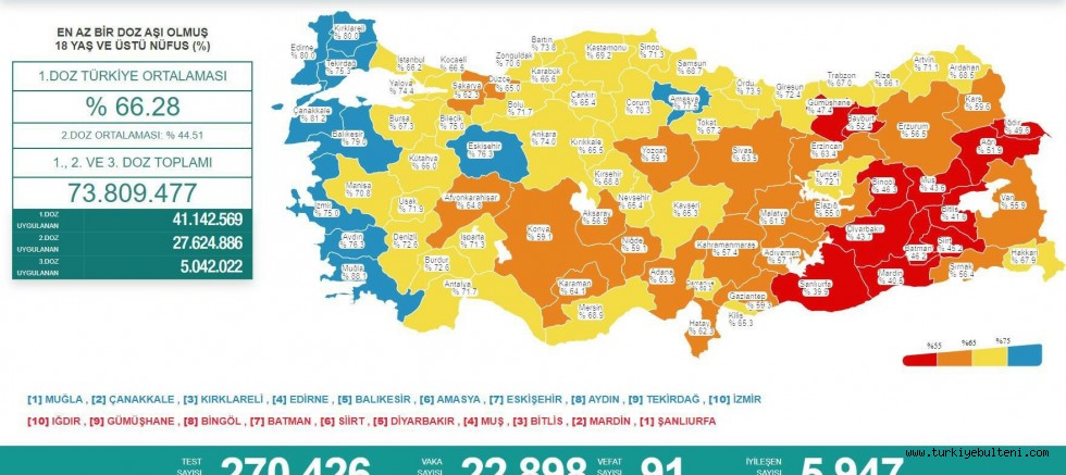 Tabloya göre son 24 saatte 91 kişi koronavirüsten hayatını kaybetti, 22 bin 898 kişinin ise koronavirüs testi pozitif çıktı.