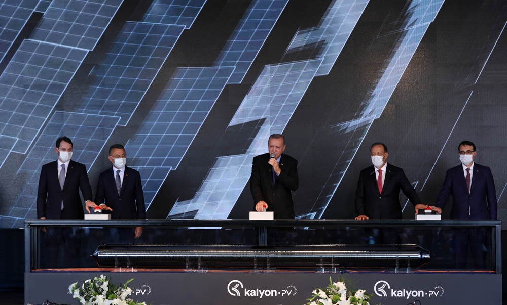 Türkiye’nin yerli ve milli yenilenebilir enerji üretimi hedefine yönelik en büyük yatırımlardan biri olan Kalyon Güneş Teknolojileri Fabrikası Ankara’da açıldı. Cumhurbaşkanı Recep Tayyip Erdoğan’ın katılımıyla gerçekleşen açılış törenine, Hazine ve Maliye Bakanı Berat Albayrak, Enerji ve Tabii Kaynaklar Bakanı Fatih Dönmez, İçişleri Bakanı Süleyman Soylu, Dışişleri Bakanı Mevlüt Çavuşoğlu, Milli Savunma Bakanı Hulusi Akar, Çevre ve Şehircilik Bakanı Murat Kurum, Ulaştırma ve Altyapı Bakanı Adil Karaismailoğlu, Sanayi ve Teknoloji Bakanı Mustafa Varank, Aile Çalışma ve Sosyal Hizmetler Bakanı Zehra Zümrüt Selçuk, Kültür ve Turizm Bakanı Mehmet Nuri Ersoy, Tarım ve Orman Bakanı Bekir Pakdemirli ve Cumhurbaşkanı Yardımcısı Fuat Oktay’ın yanı sıra siyaset ve iş dünyasının önde gelen isimleri katıldı. Kalyon Holding Yönetim Kurulu Başkanı Cemal Kalyoncu ev sahipliğinde gerçekleşen tören esnasında üretilen güneş panellerinin Konya Karapınar’da bulunan güneş santraline ilk montajı da yapıldı.
