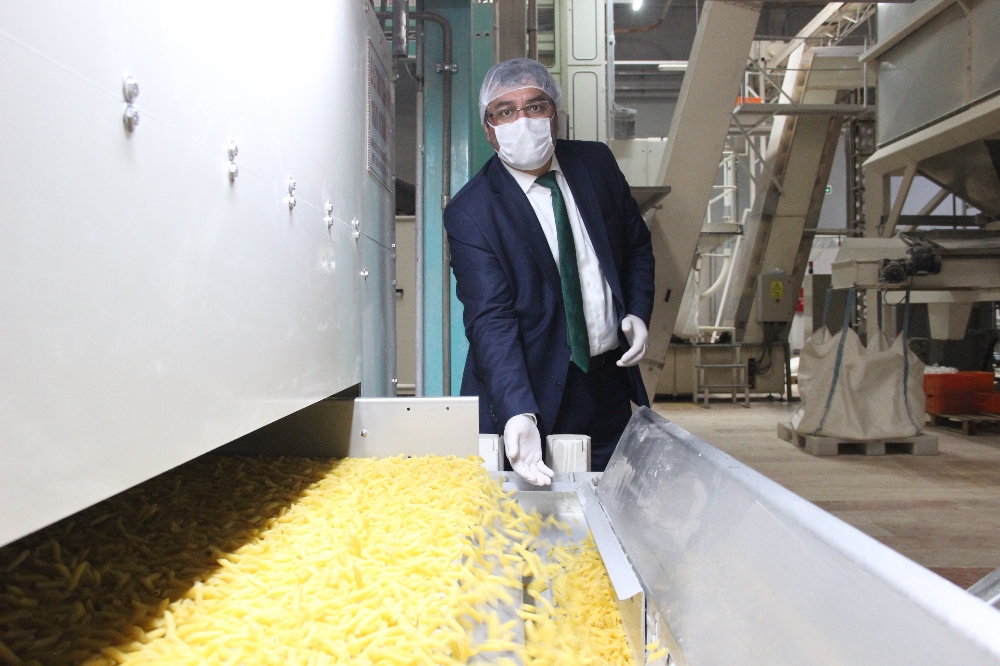 Karaman’ın Kazımkarabekir ilçesinde bulunan Golda fabrikasında 320 personel, üç vardiya halinde durmadan üretime devam ediyor. Golda Genel Müdürü ve MÜSAD Genel Başkan Yardımcısı Fatih Doğan, Türkiye’nin yıllık makarna üretiminin, tüketimin yaklaşık beş misli olduğunu ifade ederek, “Türkiye’nin yıllık makarna üretimi 2 milyon 900 bin tondur. Türkiye’nin yıllık tüketimi ise 600 bin tondur. Hal böyle olunca burada sıkıntı ve panik yapacak bir durum bulunmamaktadır. Gıda şehri olan Karaman’da, sadece biz ayda 12 milyon paket makarna üretmekteyiz. Tüm Türkiye’ye ise makarna sevkıyatı hız kesmeden devam etmektedir. Fabrikamız 320 personel ile kesintisiz üç vardiya halinde çalışmaya devam ediyor. Korona virüs Türkiye’de görüldüğü zaman az da olsa bir panik havası oluşur oluşmaz 80 ülkeye yaptığımız ihracatımızda hemen frene bastık. Ancak kısa süre sonra ortalık stabil hale dönünce tekrar ihracatımıza hız verdik. Türkiye’nin ekonomisinde sıkıntı olmaması için elimizden gelen gayreti gösteriyoruz. Biz Golda fabrikası olarak kapasitemizi arttırarak üretimimizi 10 milyon paketten 12 milyon pakete çıkardık. Sıkıntıya mahal vermemek için son hızla üretmeye devam ediyoruz” dedi.