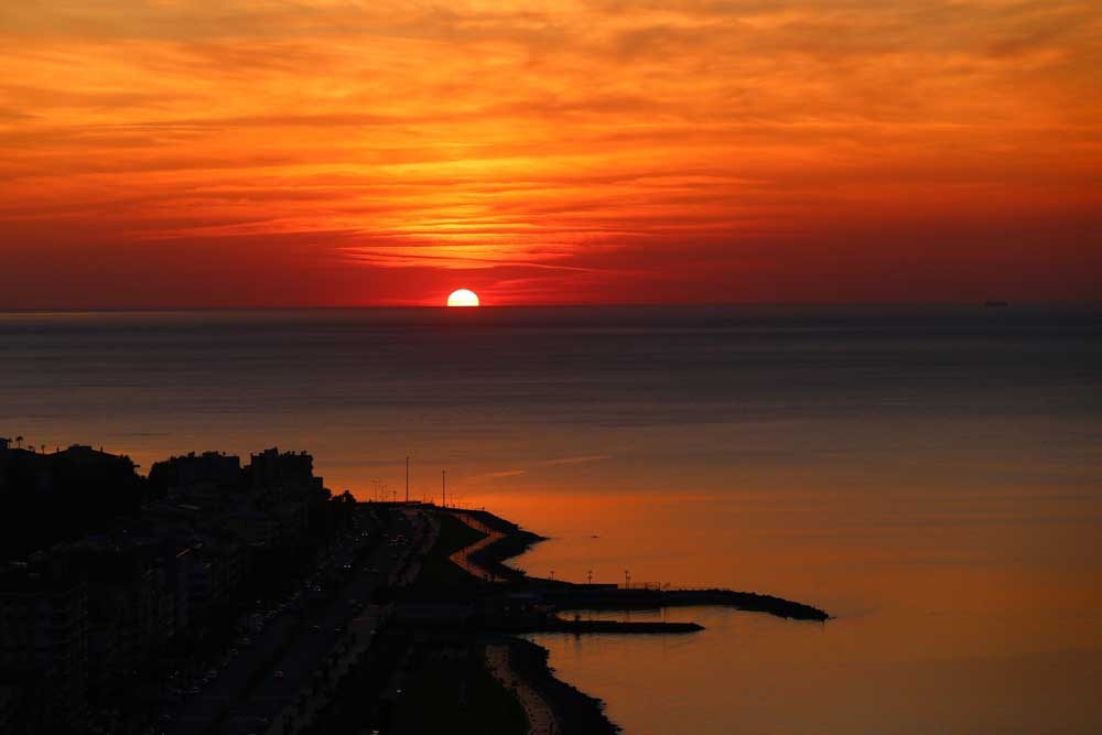 Güneşin batışının en güzel izlendiği bölgelerden birisi olan İskenderun Körfezi’nde ise gün batımının muhteşem manzarası objektiflere yansıdı.