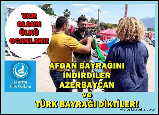Alanya'da bir otelin sahilindeki direğe asılan Afganistan bayrağı, MHP Alanya ilçe teşkilatı tarafından indirilerek yerine Türkiye ve Azerbaycan bayrakları asıldı.