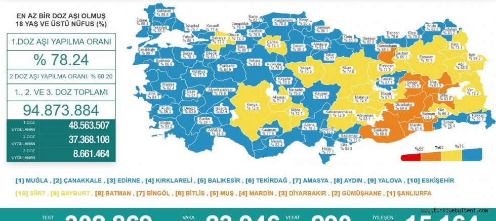 Sağlık Bakanlığınca Günlük Koronavirüs Tablosu, "covid19.saglik.gov.tr" adresinden paylaşıldı.