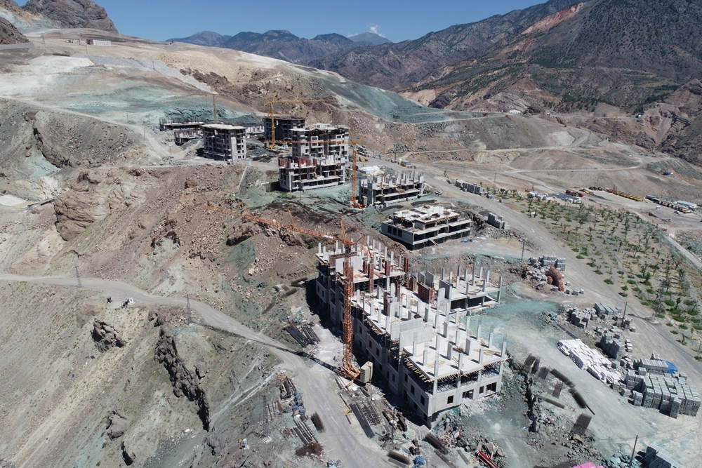 Artvin’de yapımı süren Yusufeli baraj inşaatı nedeniyle suları altında kalacak ilçenin taşınacağı yeni yerleşim alanındaki çalışmalar tüm hızıyla sürüyor. Yüzde 40’ın tamamlandığı ilçede, üst yapı çalışmaları devam ediyor.