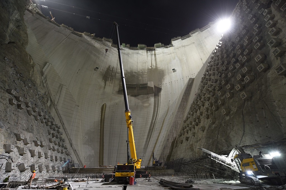 Yayınlanan görüntülerde, yaz kış, gece gündüz, yağmur çamur demeden yapılan çalışma hızlandırılmış şekilde aktarıldı. 2021 yılında bitmesi planlanan gövde beton çalışmasında bugün itibariyle 3 Milyon 620 bin metreküp seviyesinde beton döküldü.