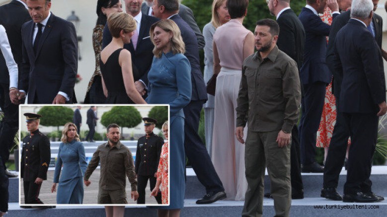 Zirve'de NATO'ya üyeliği gündemde olan Ukrayna'nın Devlet Başkanı Volodimir Zelenskiy'nin pozu sosyal medyanın gündemine düştü.